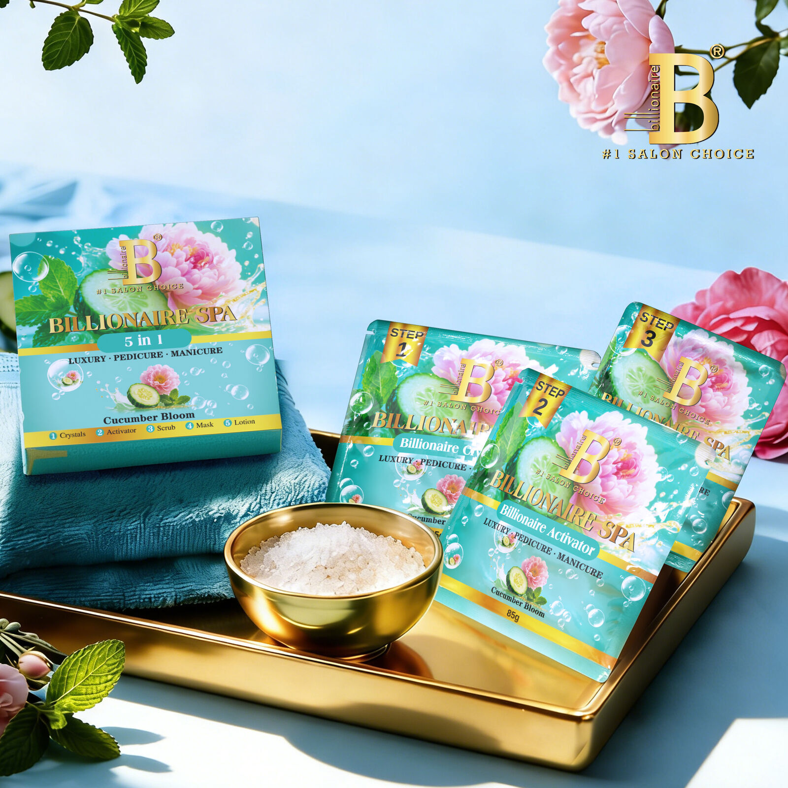 Billionaire Bubble Spa Nail Deluxe Pedicure Kit 4 Steps - Golden Rose
